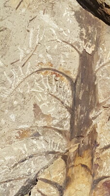 Beim Aufschluß einer neuen Sohle in unserem Steinbruch kamen im Herbst 2008 fossile Pflanzenreste der Calamophyton zu Tage. In Zusammenarbeit mit dem Dipl.-Geologen Peter Giesen stießen wir auf mindestens 2 komplette, bis ca. 1,5 m hohe Pflanzen, welche von den Wurzeln bis zur Krone im Gestein eingebettet waren.