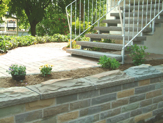 Als Mauerabdeckplatten setzt die Grauwacke Akzente und fügt sich harmonisch in die Gesamtgestaltung ein.