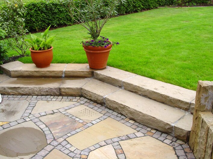 Die gespaltenen Oberflächen und die Erdfarbtöne ergeben ein natürliches Erscheinungsbild, welches sich sehr harmonisch in die naturnahe Landschaftsgestaltung einfügt.
