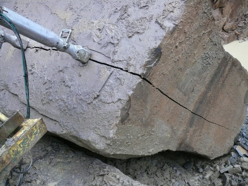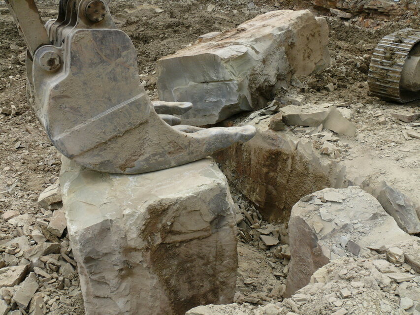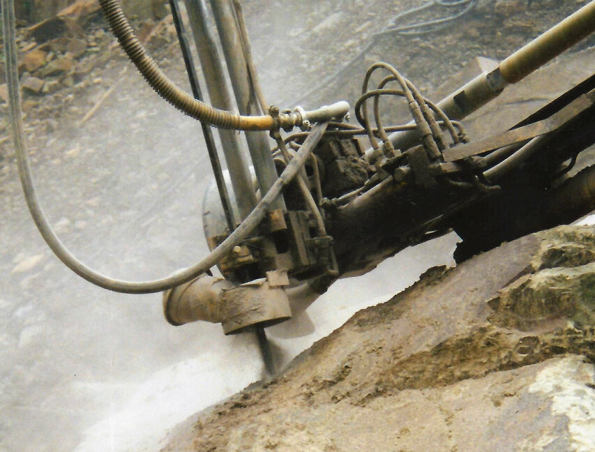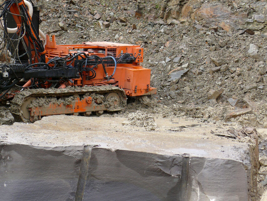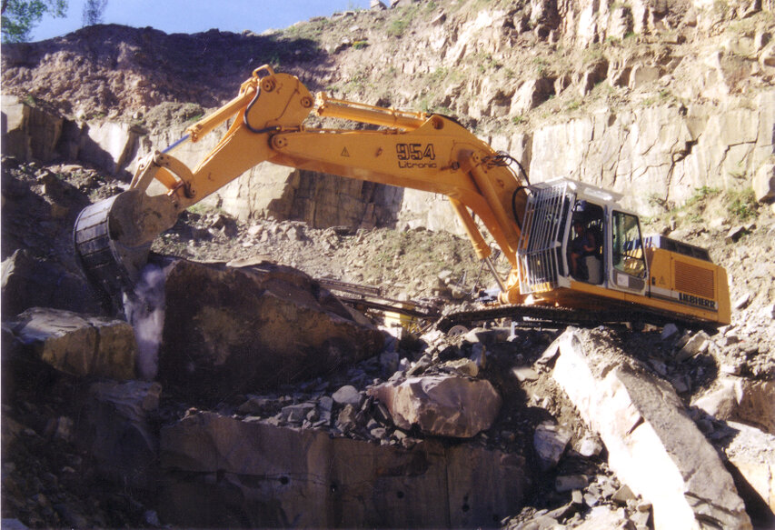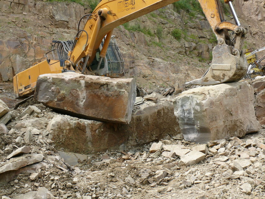 Durch den Einsatz von Tieflöffelbagger sowie einer Bohrlafette mit Spaltzylindern wird ein schonender Abbau des anstehenden Gesteins gewährleistet.