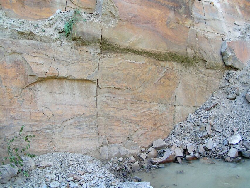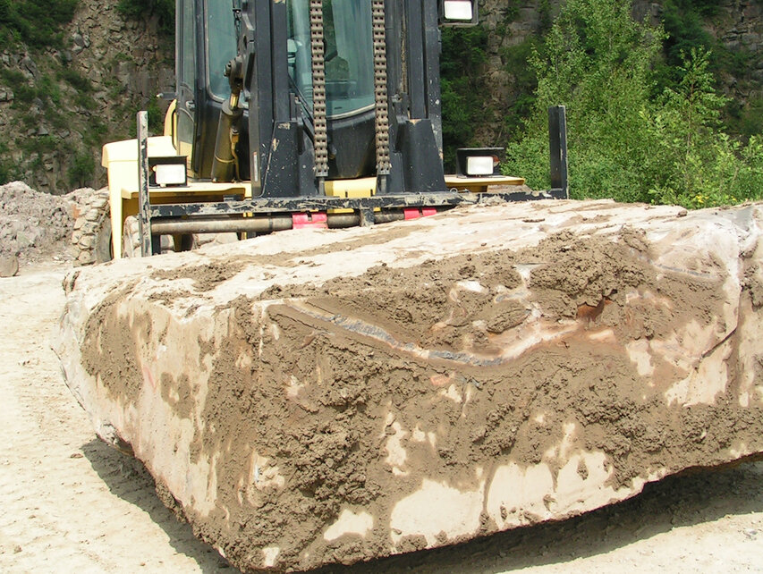 bis 6 m starken Bänken an und ist aufgrund seiner blockartigen Beschaffenheit ideal für die Gewinnung von Rohblöcken für die Weiterverarbeitung zu Werksteinen.